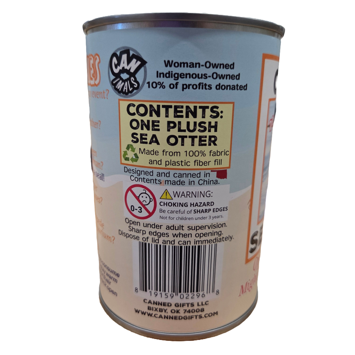• Designed and canned in the USA. Labels made in USA. Sea otter made in China.