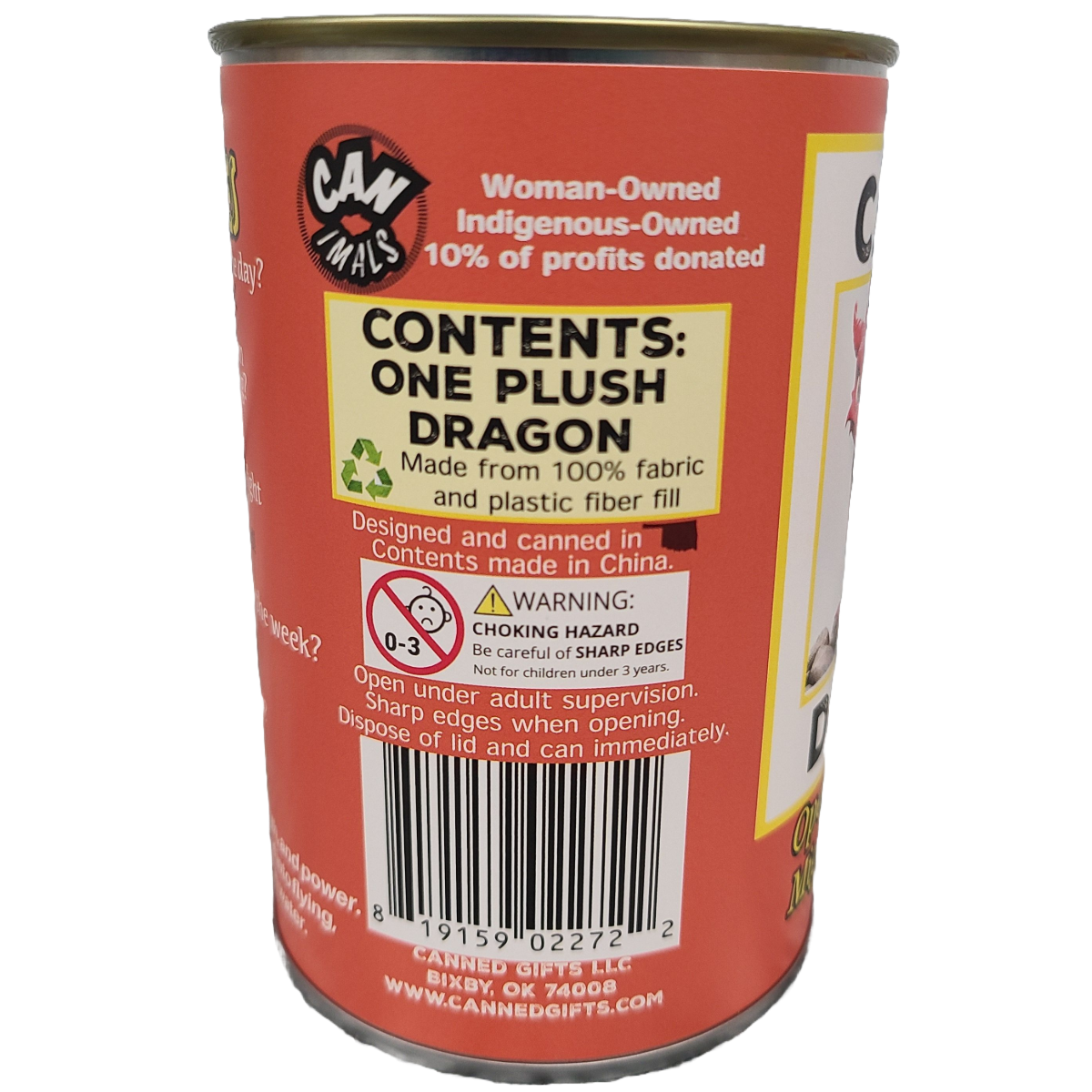 Included is 1 plush dragon sealed in a can. Use a can opener to open the fun gift or choose a pop top lid