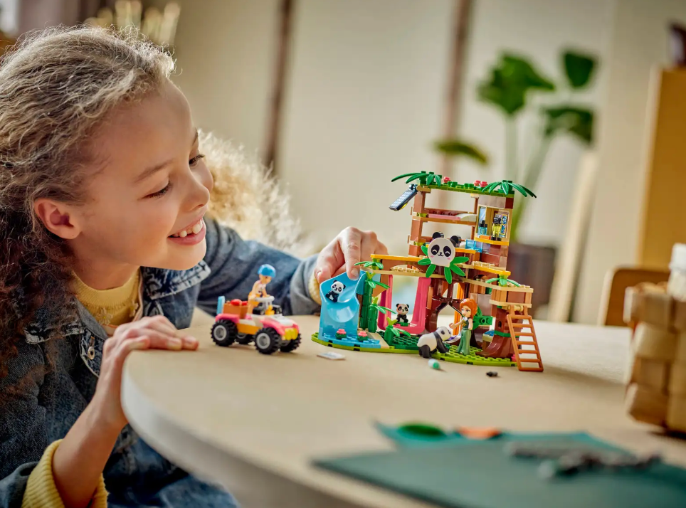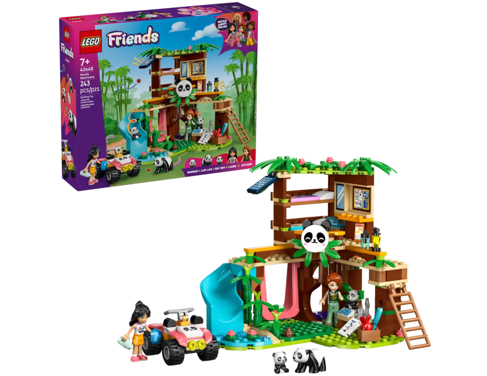 Discover a fun kids’ building set gift that’s packed with panda power! The LEGO® Friends Panda Sanctuary Animal Care (42648) set for girls, boys and animal-lovers aged 7 and up lets kids create their own panda rescue stories. The set comes with a buildable tree house and ATV, 2 minidoll characters and 3 panda figures to inspire creative pretend play.
